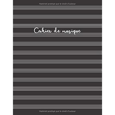 Taille : 21.6 x 28 cm (légèrement plus petit que le A4)Couverture : format livre de poche laquéContenu :- papier blanc- 100 pages de partitions- 12 portées par page- espace entre les portées pour les paroles et les notes- pages numérotéesCarnets pratiques vous apporte une variété de carnets et de journaux essentiels – dont des carnets de partitions vierges avec le même intérieur que celui-ci, mais avec un style de couverturedifférent.