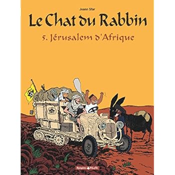 Alors que Zlabya s'ennuie au côté de son époux, le rabbin reçoit une caisse contenant un peintre russe voulant parcourir l'Afrique pour retrouver la douzième tribu d'Israël. Cinquième tome du best seller de Joann Sfar, Jérusalem d'Afrique est un éblouissant voyage dans une Afrique sublimée, croisement improbable sur plus de 80 pages entre Tintin au Congo et les chefs-d'oeuvre d'Albert Cohen. Et en plus le chat reparle. Absolument indispensable.
